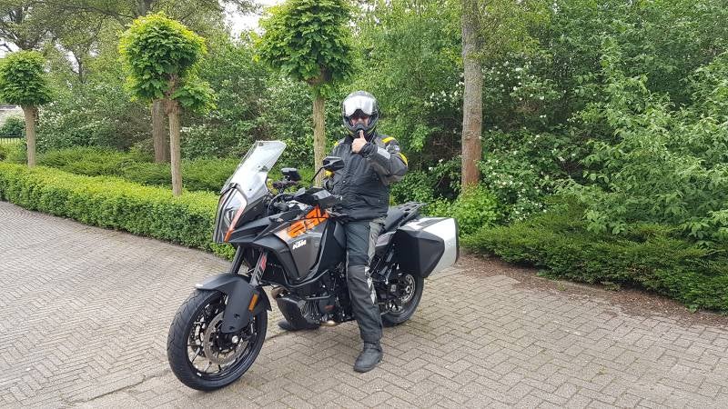 18 Mei 2017 de KTM opgehaald. Nu inrijden. Wat een machine, je kan er heel rustig mee toeren maar je voelt nu al dat er een aantal paarden staan te trappelen om losgelaten te worden.